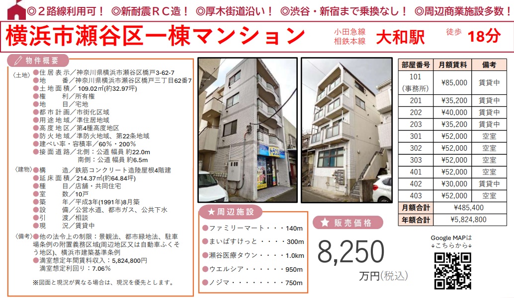 - 神奈川県横浜市瀬谷区 横浜市瀬谷区一棟マンション